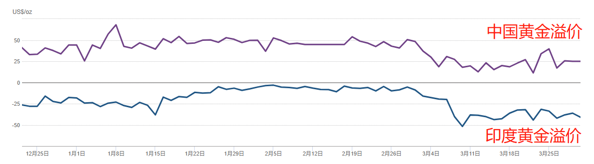 然而从中国与印度黄金溢价来看,当前的溢价远低于3月初的时候。因此这波黄金的大涨也并非是中印的黄金消费引发的。