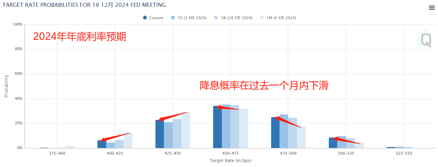 那就更不可能了是金价暴涨的原因了。从市场的降息预期来看,在过去一个月里,降息预期非但没有上升,反而在下降。