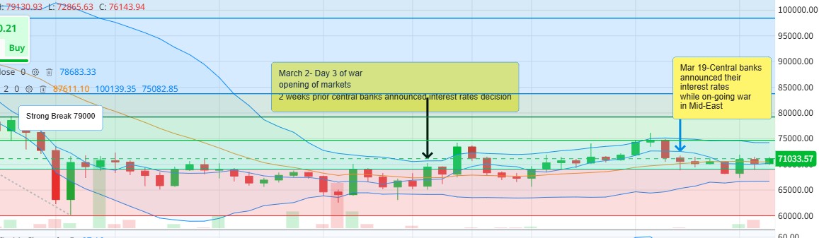 Looking at the charts, the floor and ceiling. Floor price is what we call as Support where the level when money usually stops falling. It’s like a safety net. On the other hand is the ceiling price called as Resistance which is a high price that hard to move past. First floor price at is seen at 69061 and second at 59988 while first ceiling price is 74674 and second at 79210.