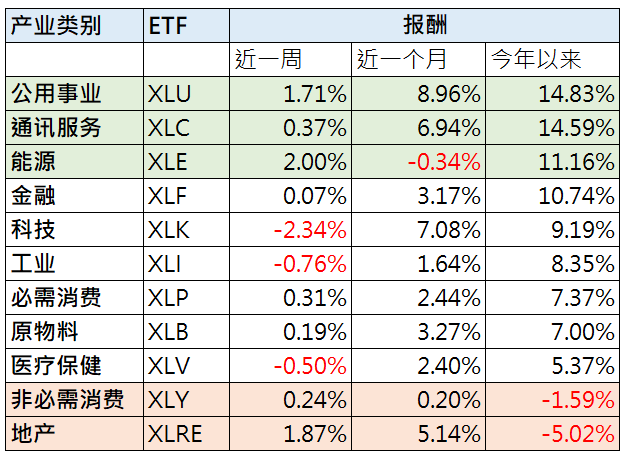 公用事业在五月表现续强,甚至年至今报酬已成为排名第一的板块,主要受惠电力需求由平稳转为激增,龙头企业NEE预估未来7年,对可再生能源和储能需求将至少增加3倍,下半年相关企业也将增加资本支出因应,而且还有高股息收益率的优势,对公用事业仍持正向看待。