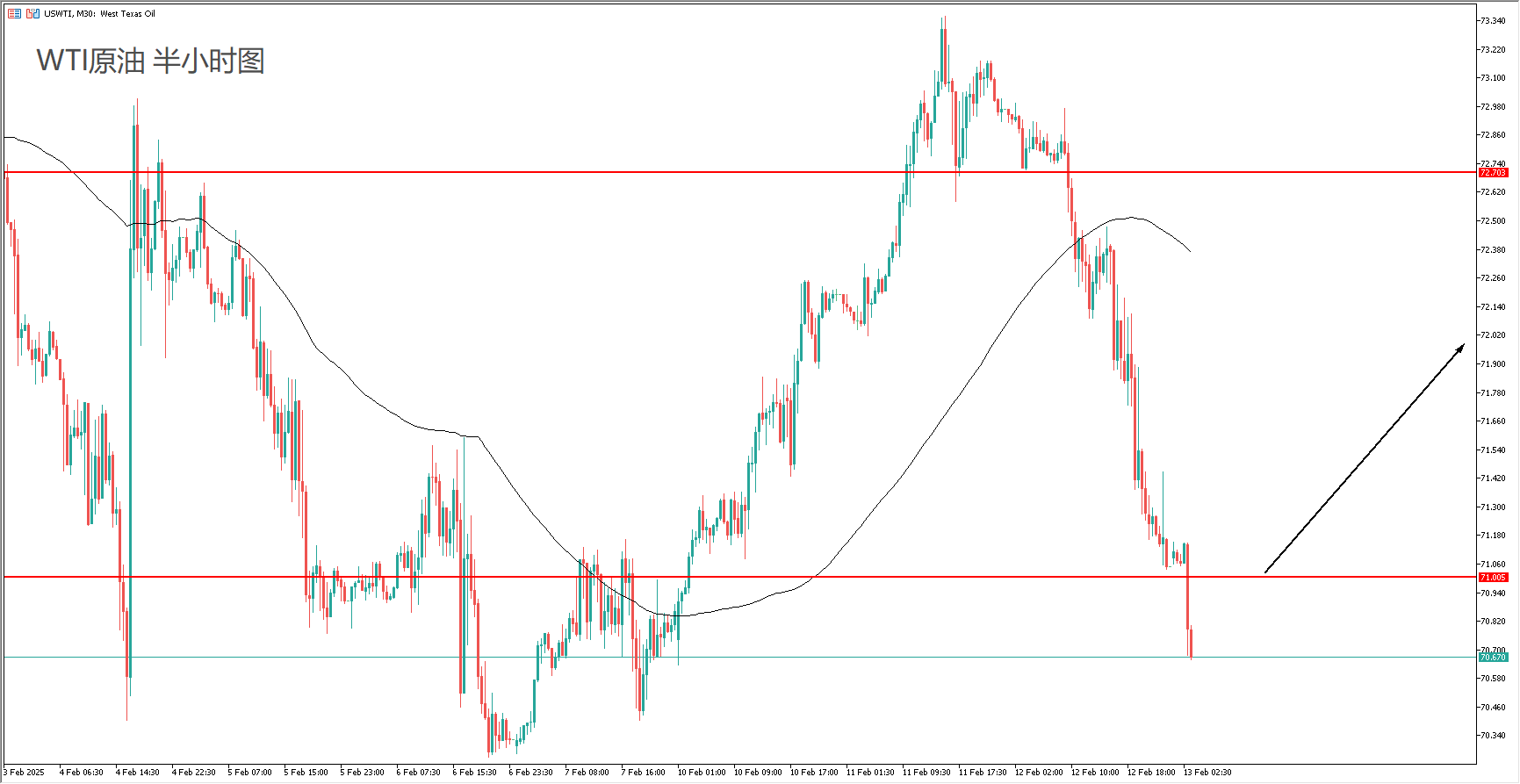 交易策略:(均值回归)美盘时段,突破71后跟涨