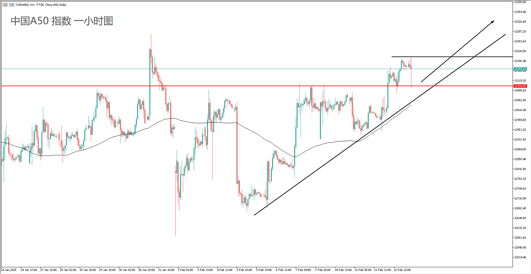 技术面: 100均线保持向上,趋势线提供支撑,A50指数有机会补涨和港股之间的缺口。由于开盘动能不是很明朗,交易策略以低位看涨为主。