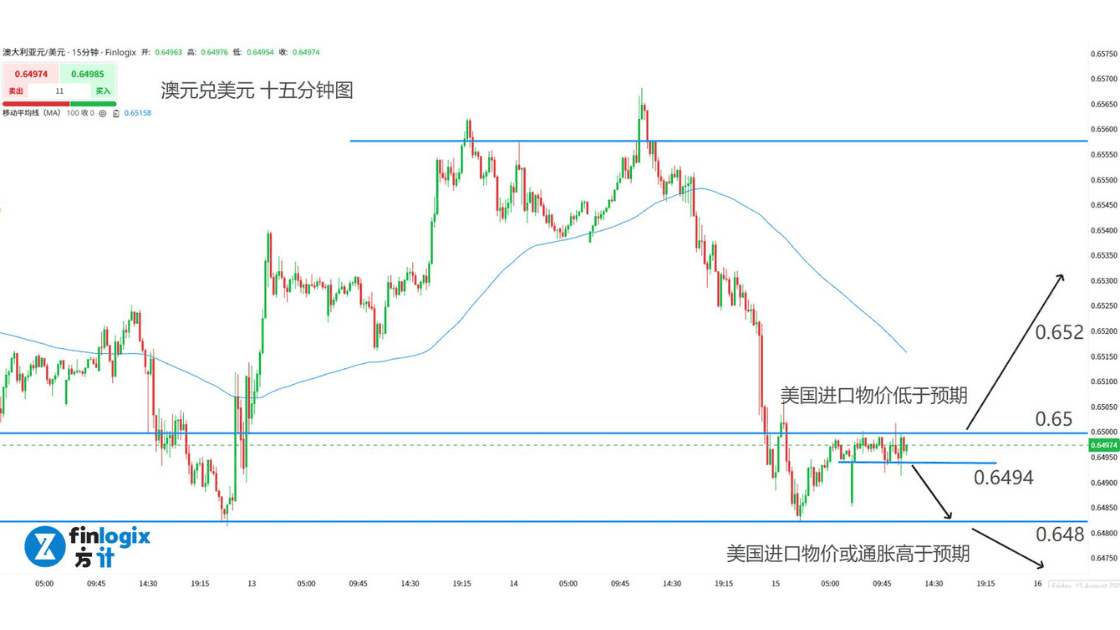 技术面: 100均线向下,PPI报告带来的空头动能强劲,早盘时段能保持看空操作,关注突破当前静区的空头信号。在数据发布后,观察澳美突破方向。上破跟涨,下破跟空。