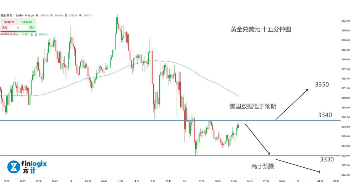 技术面:100均线出现拐点,空头动能强劲,金价跌破关键支撑3340关口,在数据发布前保持波段做空操作。数据行情中关注突破方向,上破3340看涨,下破3330看跌。