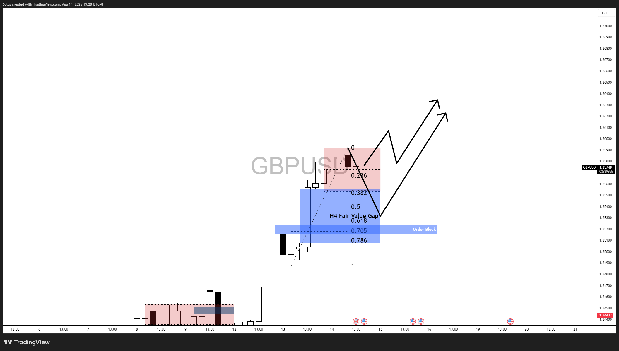 Sterling has extended its bullish momentum against the U.S. dollar, trading below the 1.36 level after a powerful post-CPI surge. The rally unfolded in a sequence that blended liquidity concepts with macro fundamentals, particularly, CPI as the catalyst for upside.