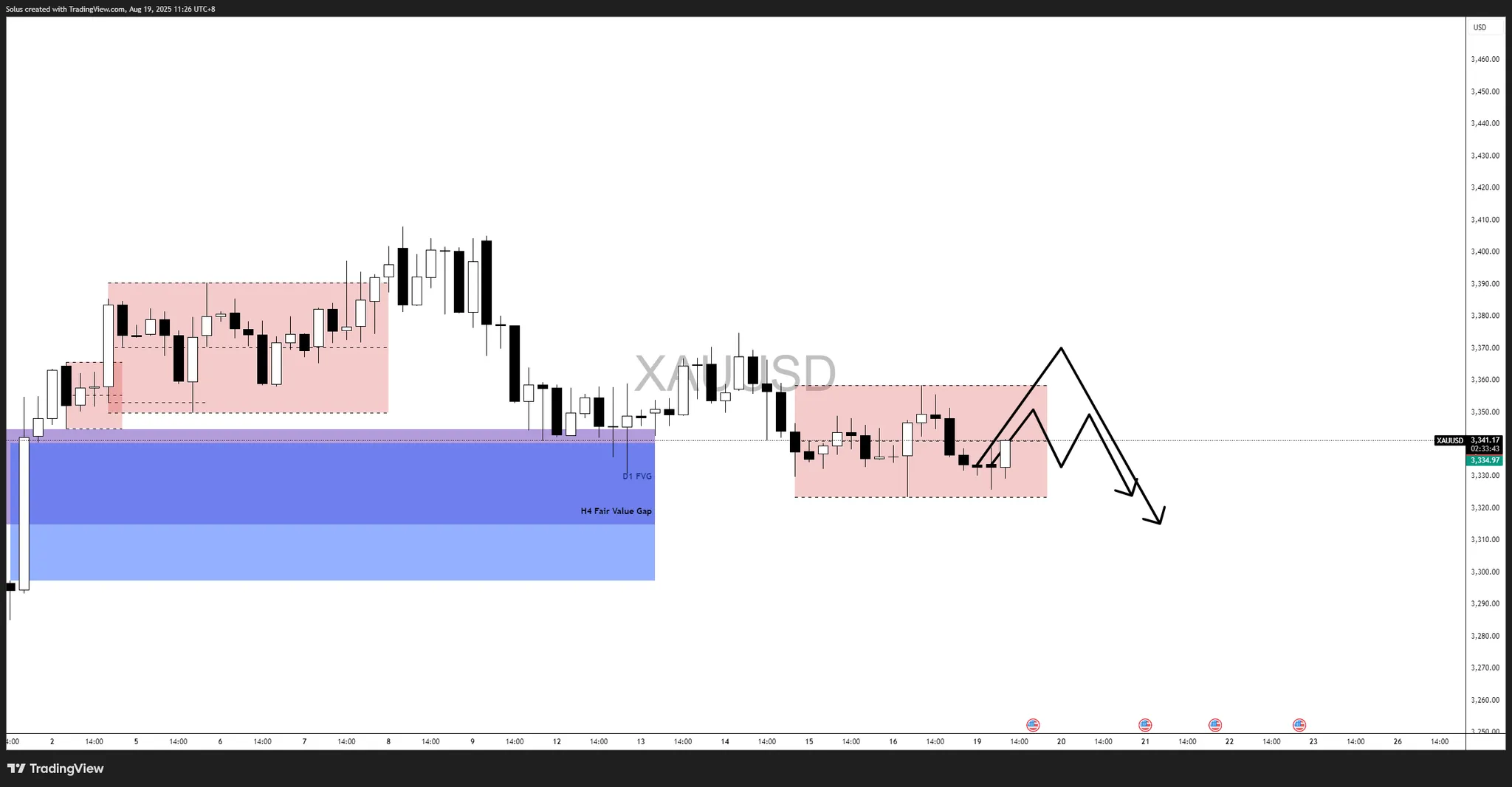 The U.S. Dollar Index (DXY) consolidates between 97.60–98.30 ahead of Jackson Hole, with Fed cut odds cooling to 84%. Despite short-term upside, the broader trend remains bearish unless price breaks above 99.00.