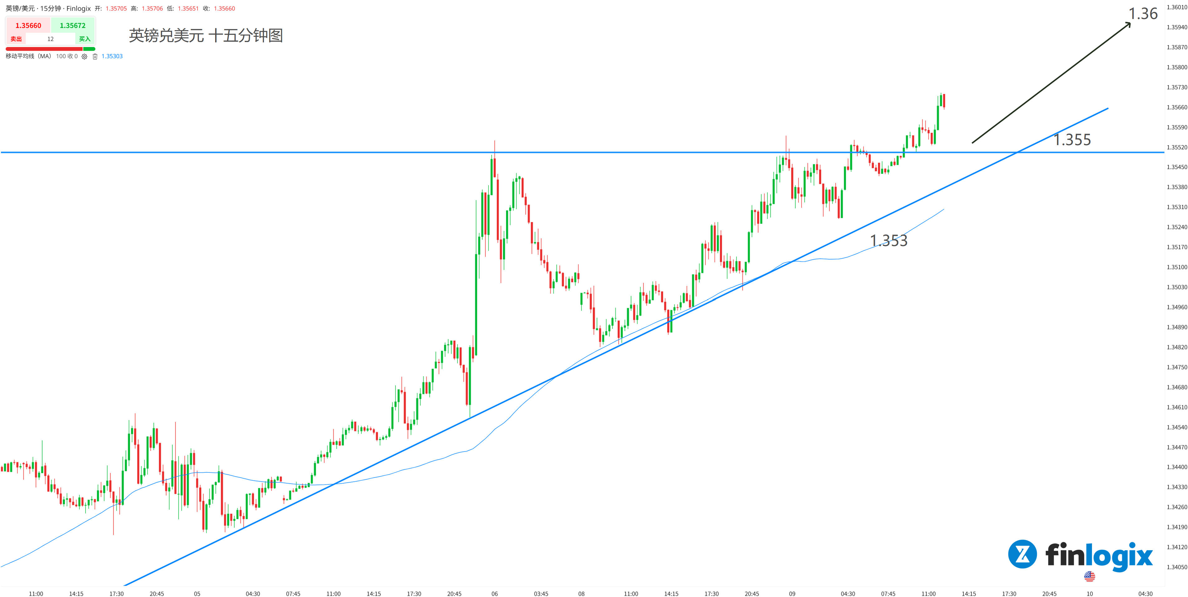 日内交易策略:(趋势跟随)1.355附近趋势跟涨
