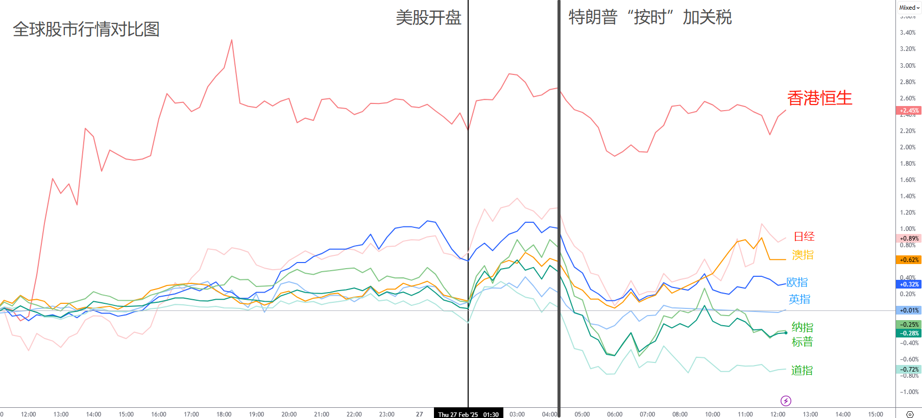 万众瞩目的英伟达财报高开低走,三大股指早盘集体下跌,今天的美股看来是好不了了。美元总算是跌到头了。受到美股下跌影响,日元本周涨势不停,澳元倒是表现最差。要不是特朗普口误,说加拿大关税将“暗示”在4月2日落地,加拿大元可能也要暴跌了。