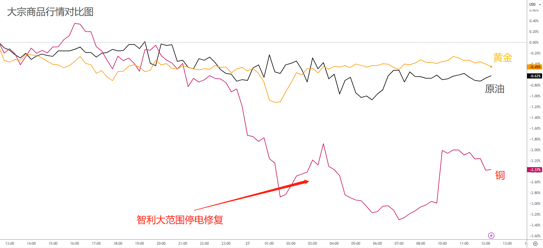 大宗商品市场依旧整体保持无消息面震荡下滑。铜价波动最大。前一天特朗普的铜关税与智利大停电事件引发铜价飙升。然而仅仅一天后,转移需求降温,智利电力恢复便让铜价吐出了全部涨幅。
