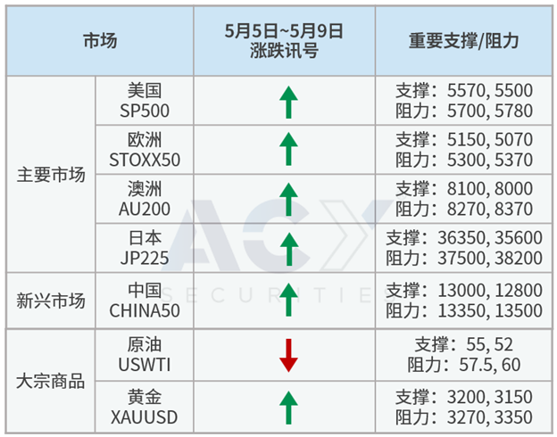 -本周 美国S&P500、中国A50  、欧洲STOXX50、澳洲200、日经225 逢低偏多