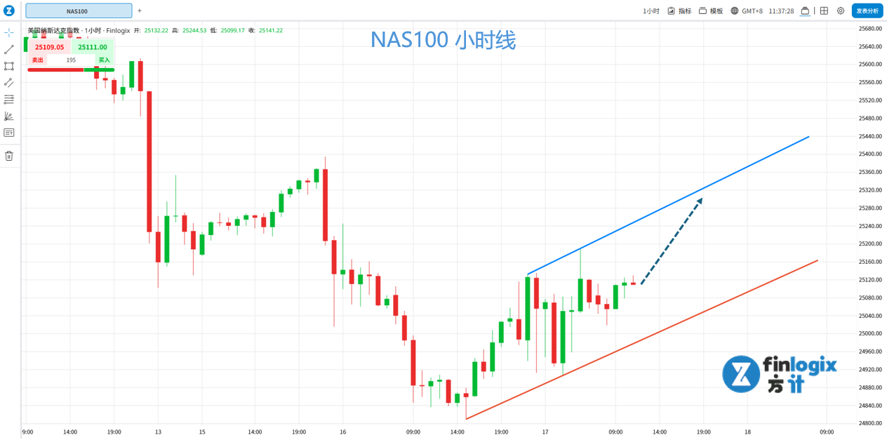 技术面:从日线格局上,昨日纳斯达克100指数来到此前上涨波段(11月21日~12月11日)的50%处企稳,加上挺过昨天非农数据的乱流,当前价格保持在非农数据公布前的上方,因此短线或有进一步上攻的机会。