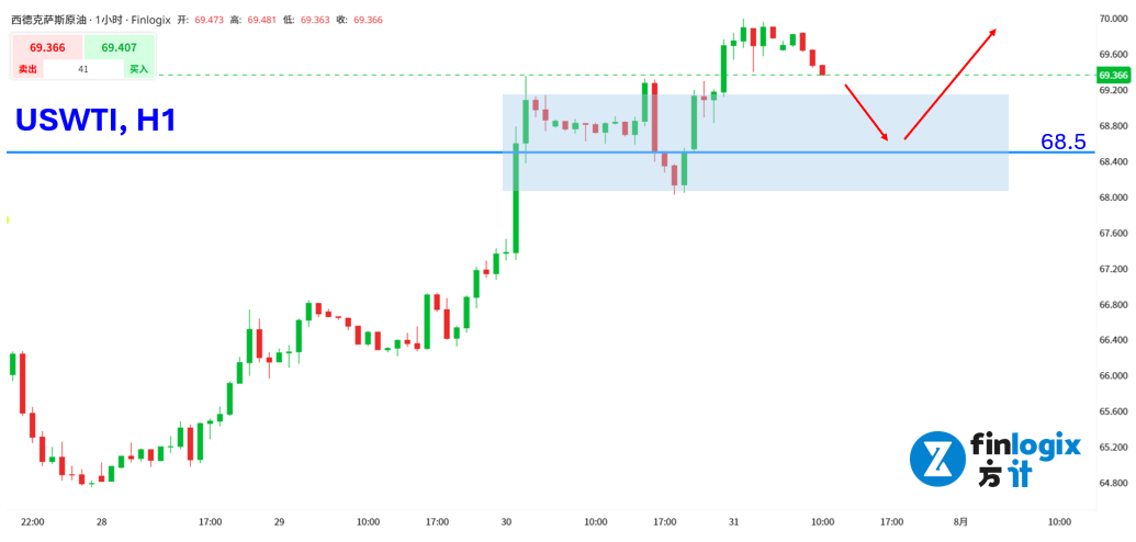 交易策略:回踩68.5~69支撑止稳后,考虑做多