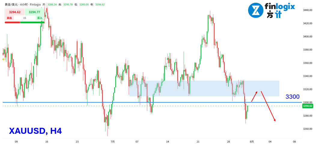 技术面:美国经济数据强劲,加上持续维持高利率政策,市场避险情绪明显降温。昨日黄金价格大幅下跌,失守3300美元关口,并跌破重要季线支撑,短期走势偏空。考虑到本週五即将公布的非农就业数据可能强劲,且多国陆续与美国达成贸易协议,黄金避险需求难以回升。预计今日金价反弹至3305至3335美元区间将受压,短线可考虑逢高做空操作。