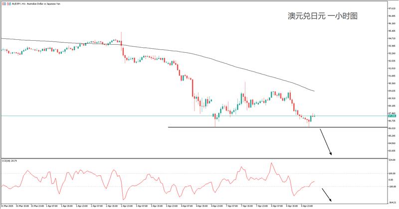 市场期待的关税协议终究没有消息,这意味着明早的对等关税将会落地。全球股市因此齐跌,大宗商品无一幸免,澳元与纽元跌幅最大。唯独日元和瑞郎表现极佳。想要提前布局对冲极端风险,不妨考虑做空澳元兑日元!