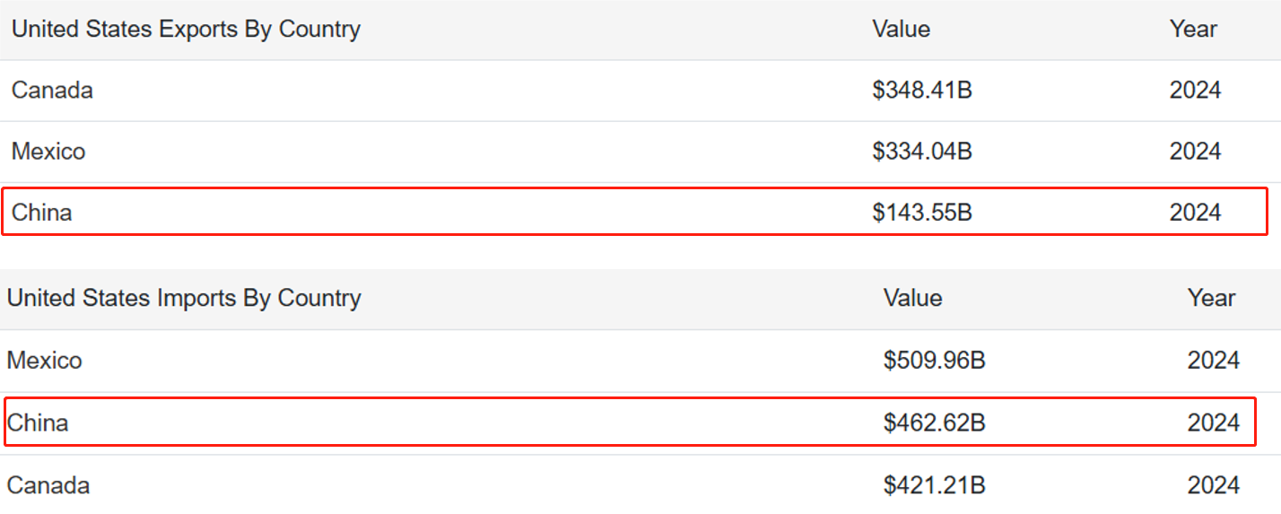 例如,2024年,中国对美国的出口总额为4630亿美元,进口总额为1440亿,那么对应的中国对等关税税率为: