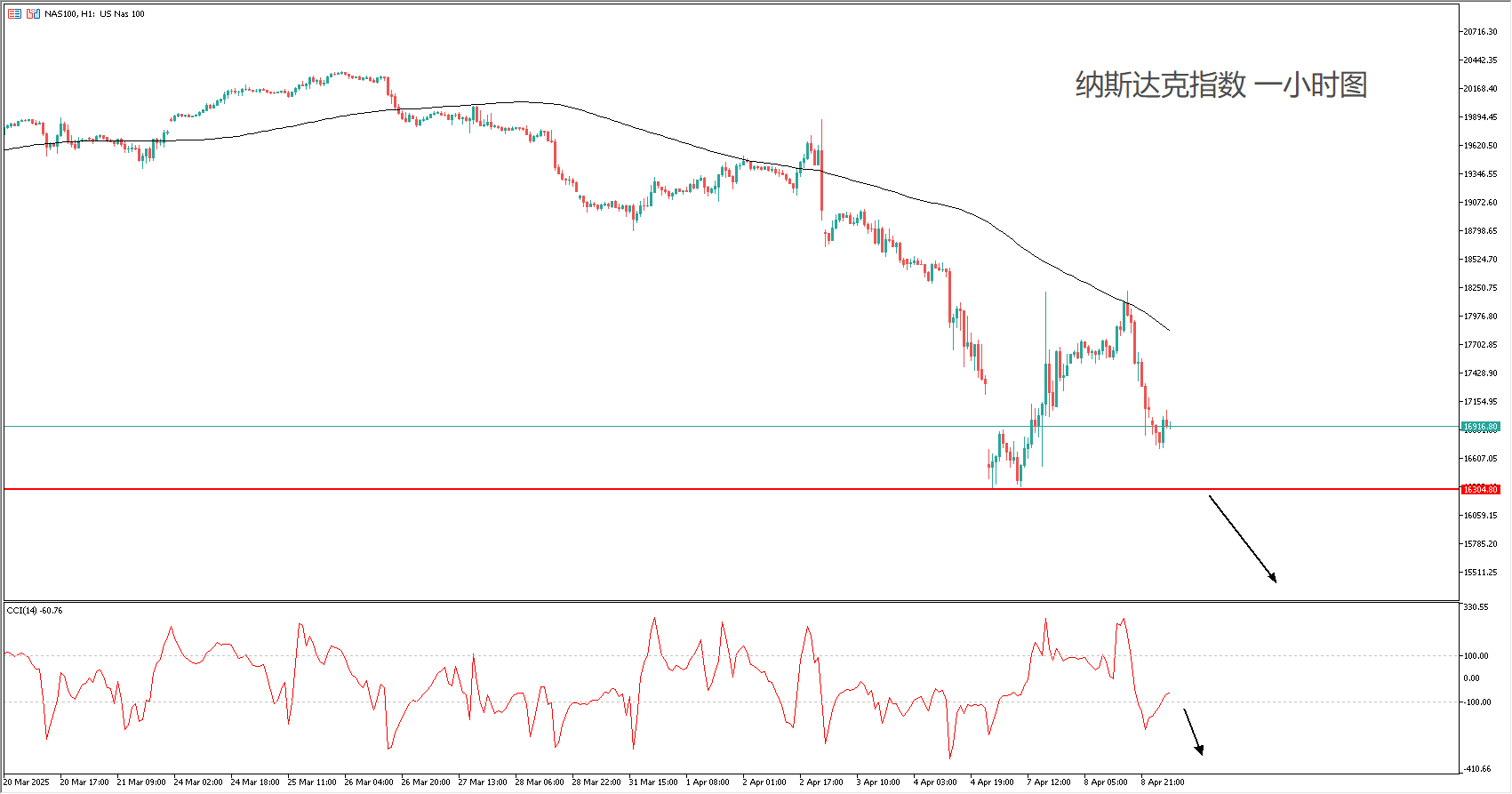 技术面:100均线向下,空头趋势明显。交易策略采用突破跟随为主,极端行情+历史低点,支撑并无作用。进出场都要依靠CCI趋势指标的信号,突破-100线入场,回归中心区域平仓。