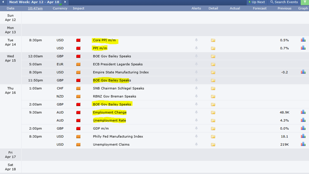 • PPI m/m (Tue) – Measures inflation at the producer level (full data).