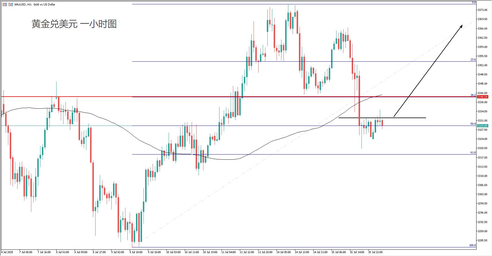 日内交易策略:(趋势跟随)等待价格突破3332或3340后跟随看涨