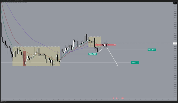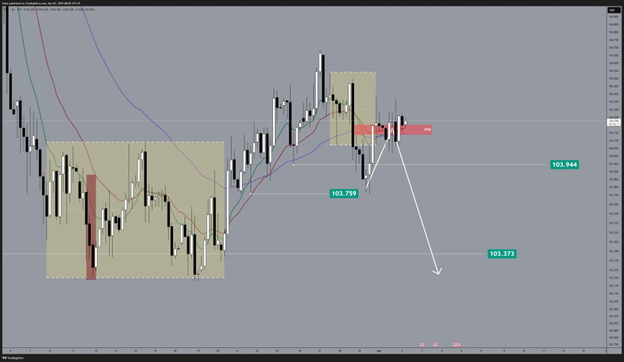 • USD is range-bound between 104.40 – 103.75, reflecting indecision.