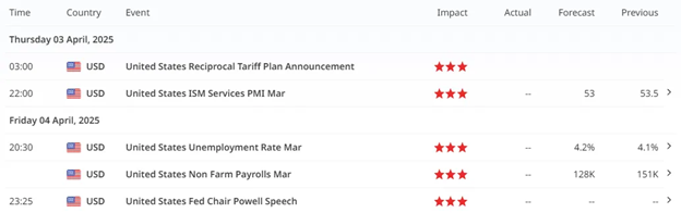 The first week of April 2025 opened with a bang as U.S. reciprocal tariffs went live. This triggered volatility across all major asset classes — particularly the U.S. Dollar and U.S. indices. While the USD battled with stagflation fears and range-bound indecision, equity markets became a case study in divergence: Dow Jones showed weakness due to global exposure, Nasdaq 100 showed resilience thanks to tech strength, and the S&P 500 hovered in between, reflecting mixed sentiment and sector rotation.