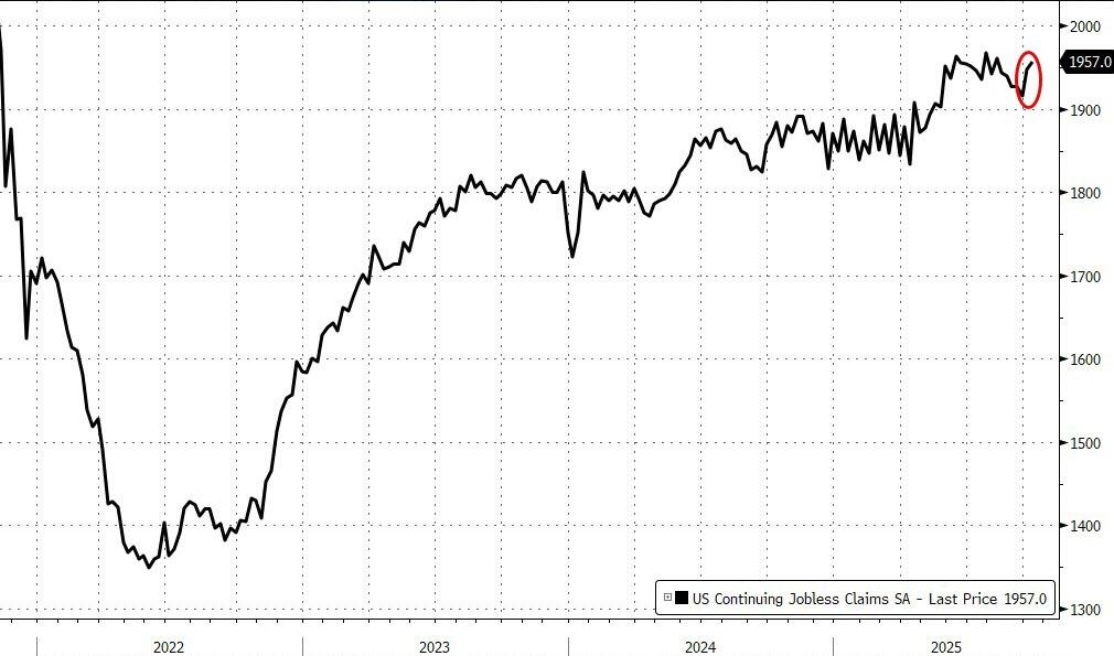Đồng thời, số người tiếp tục nhận trợ cấp tăng lên 1,957 triệu, vượt mức dự báo 1,930 triệu nhưng vẫn thấp hơn đỉnh ghi nhận vào giữa mùa hè.