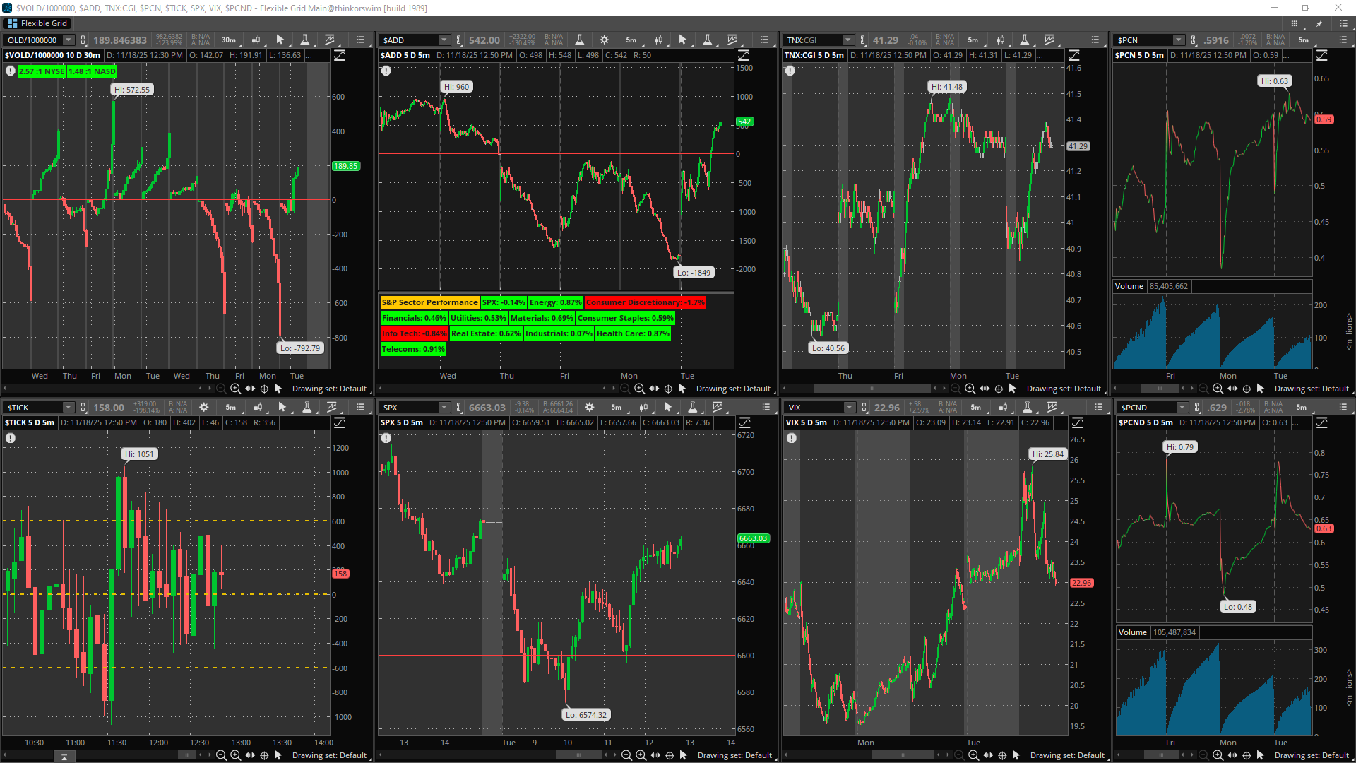 Theo quan sát từ heatmap, mức 6600 được xác định là đáy của Gamma SPX, trong khi VIX chạm ngưỡng 25 – mức đỉnh gamma với 50% hợp đồng sẽ đáo hạn vào ngày mai. Kết quả là SPX có lúc giảm xuống 6580 trước khi bật lại nhờ hoạt động shorts-cover, còn VIX nhanh chóng hạ nhiệt về vùng 22–23, hình thành trạng thái tích lũy cho kỳ OpEx.