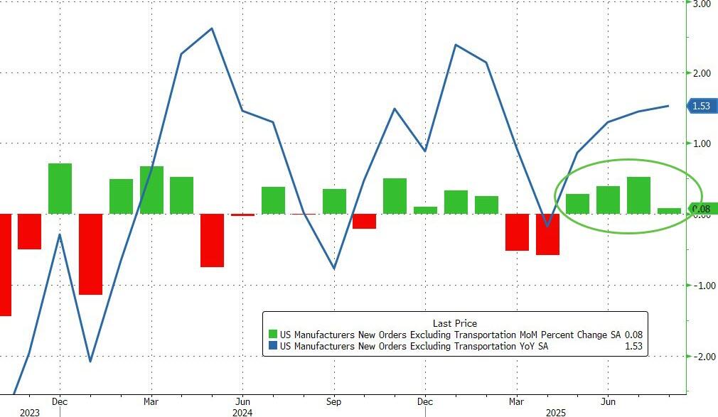 Nếu loại trừ lĩnh vực vận tải, đơn đặt hàng nhà máy chỉ tăng nhẹ +0,1% so với tháng trước, trong khi số liệu tháng trước được điều chỉnh từ +0,6% xuống +0,5%.