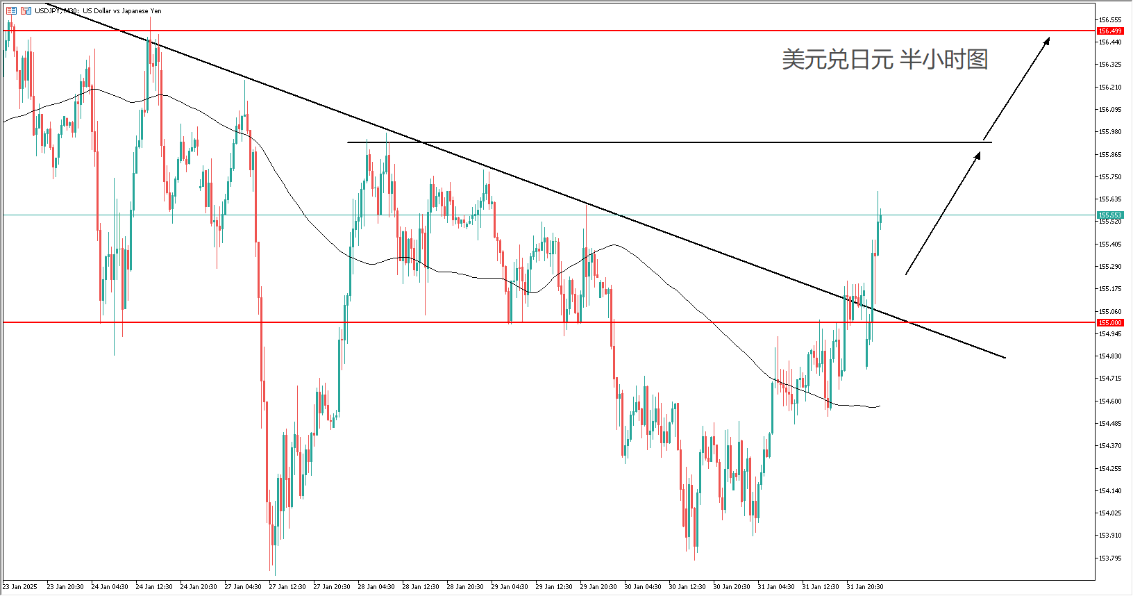 短线交易策略:(均值回归)155-155.3区间逢低看涨