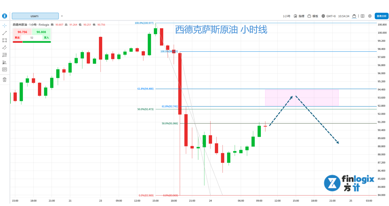 日内逆势交易策略:反弹来到92.74~94.48区间止涨后,考虑做空