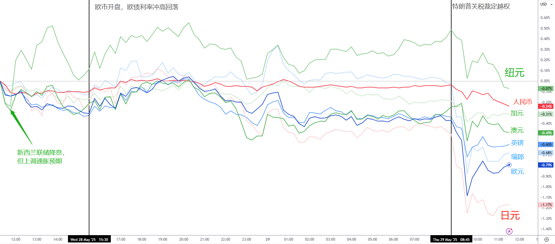 欧系货币:欧市开盘时,国债利率上涨,带动非美货币上涨,但涨势很快终止,回到了下跌趋势当中。可能受到瑞士与美国贸易谈判达成初步草案的消息影响,昨日美盘,瑞郎的表现抗压。不过当关税裁定发布后,美股大涨带动瑞郎暴跌,最终同样大幅下滑。