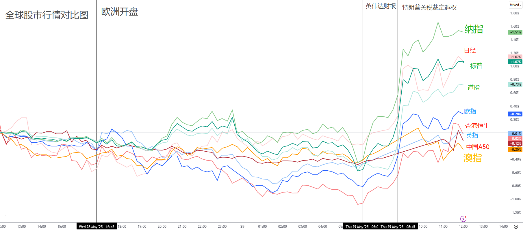 当然,更重要的还是关税裁定消息。由于关税影响广泛,消息一经发布,美股大盘暴涨,连带其他股市一同冲高。