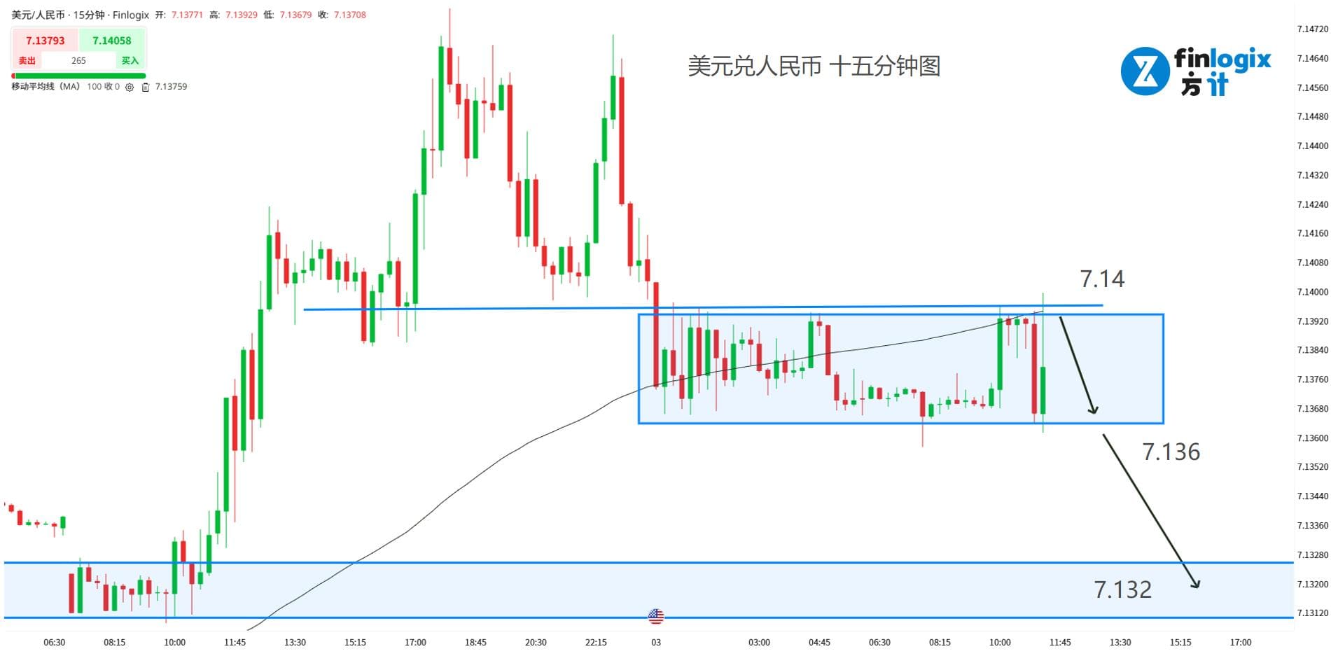日内交易策略:(均值回归)突破7.136跟随看跌,或7.14附近小止损看跌