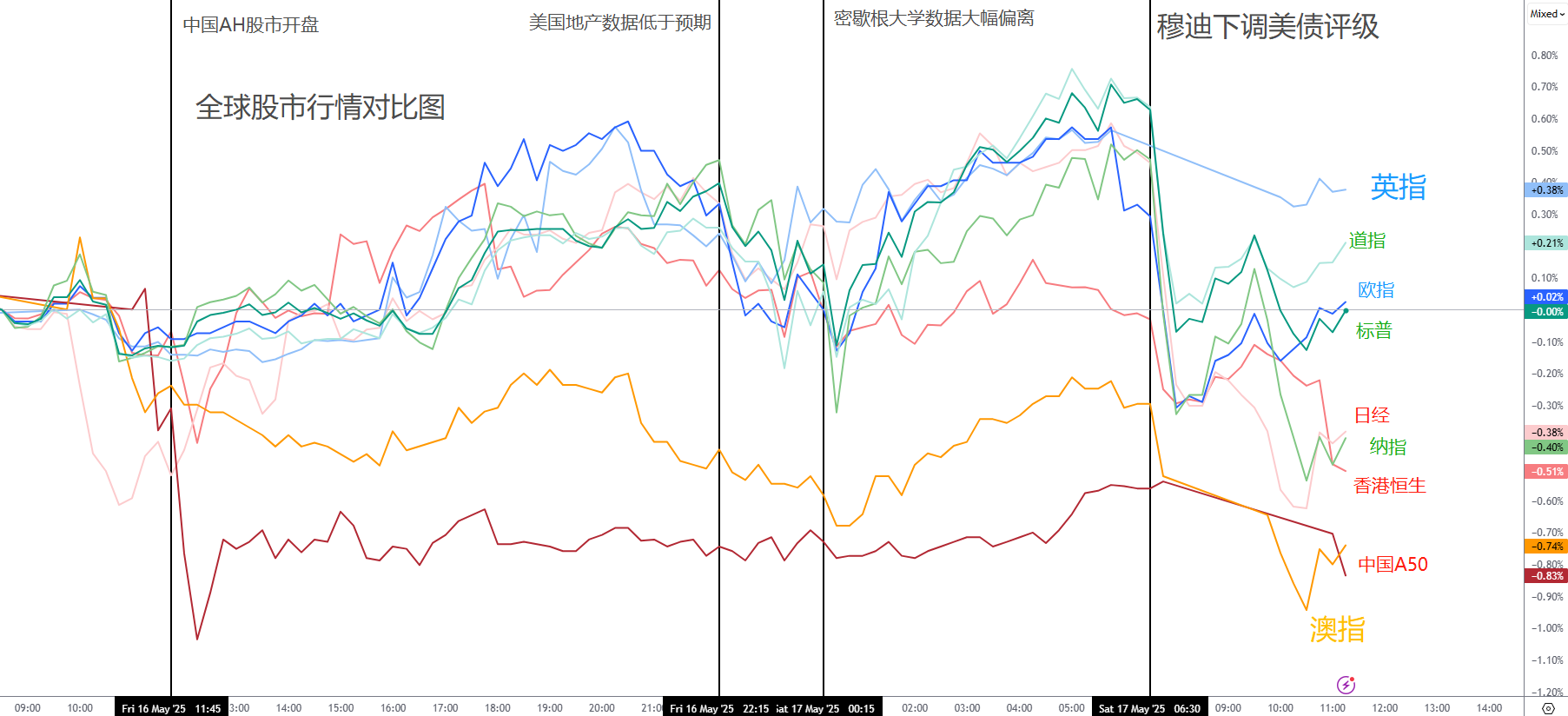 上周五最关键的是美市盘后,穆迪下调了美国国债评级,令美债利率大涨,美股与美元暴跌。