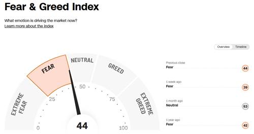 恐惧与贪婪指数仍处在”恐惧”状态