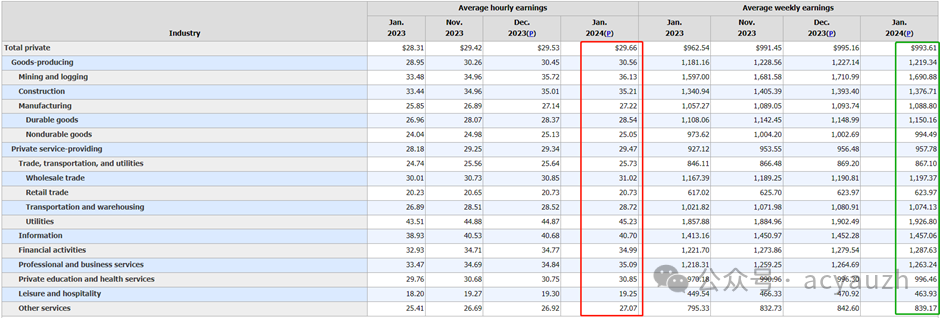 非农调查仅针对企业雇员,但由于采用更大的样本量,因此准确性相对更高。但不少人质疑非农的准确性,因为非农经常对过去发布的数字进行修正。之所以如此,是因为其实非农本身是一个预测值。距离来说,2月2日就发布1月份整个月的就业变动,势必会缺少很多数据来源。因此统计局往往会在下个月对上个月的数据进行修正。从非农薪资来看,虽然时薪水平全面增长,但由于工作时长下滑,导致不少行业的周薪都在下降。