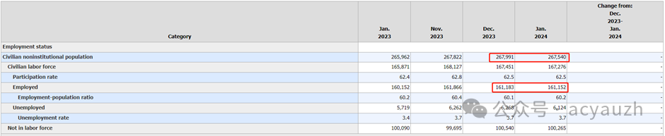 不过报告中并非所有数据都是好的。首先失业率之所以很低,主要是因为劳动总人口出现收缩,而且这种收缩从去年11月份已经开始。与此同时,家庭调查中的就业人口不仅没有上涨,反而下降了约3万人。这也让部分分析师认为是劳动力降温的迹象。家庭调查中会覆盖更多的人口,例如自雇人士,农业人口等等。