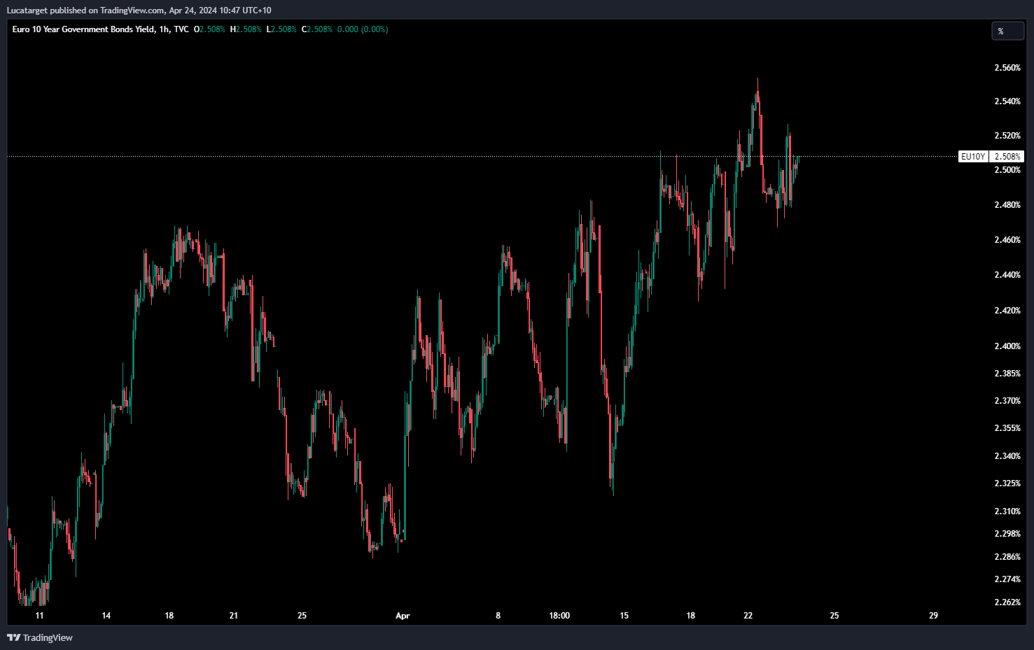 The prevailing market turbulence prompted a temporary squeeze on popular FX carry trades, exemplified by a flash crash in the Mexican peso following geopolitical ripples from the Middle East. Yet, the MXN swiftly regained its footing, underscoring resilience amidst fleeting disturbances. The broader trend of USD strength persists, fuelled by expectations of a delayed Fed easing cycle and higher US yields.