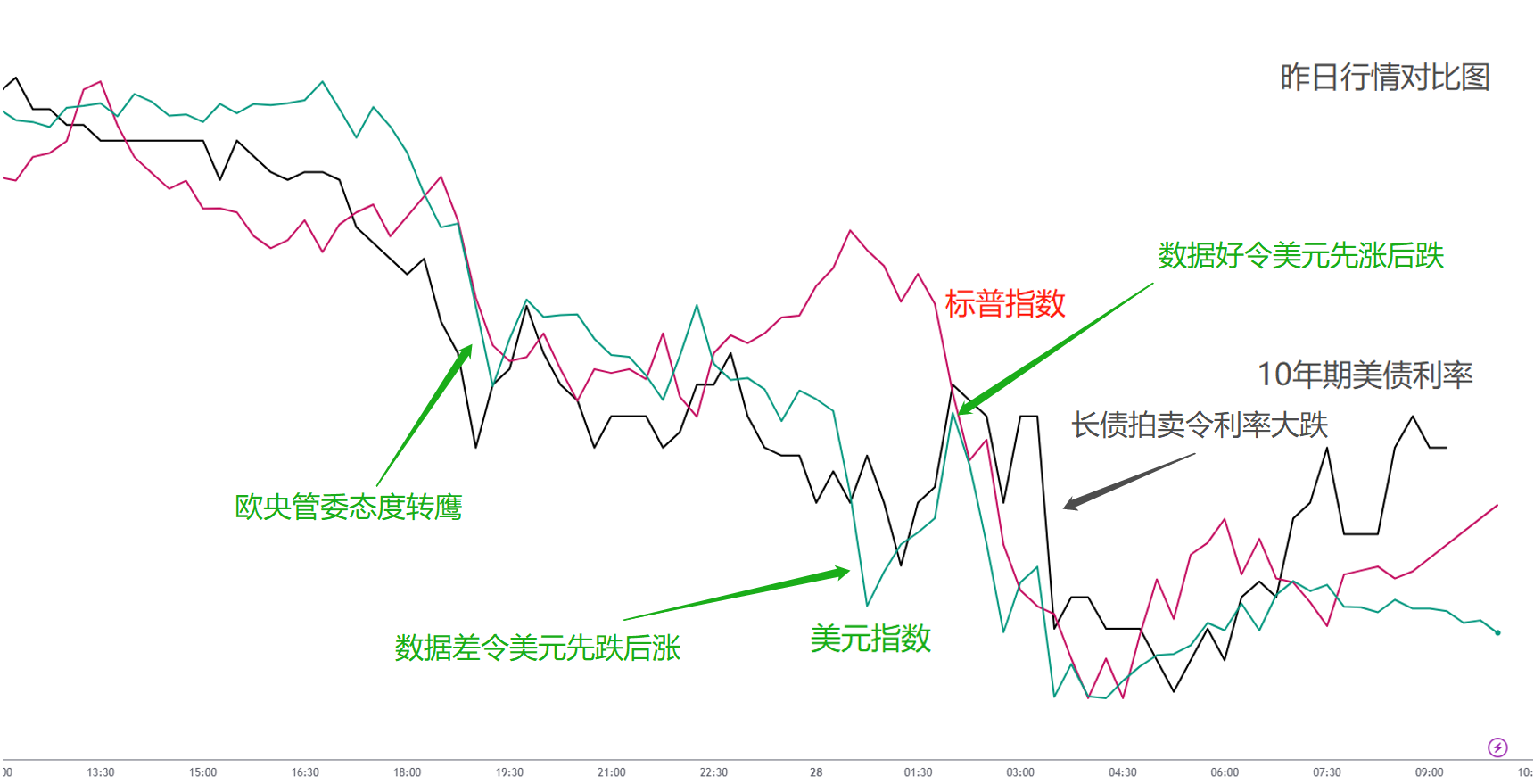美元的跌势在美盘前后的两波数据行情中进一步加重。整体来看数据好坏参半,耐用品订单、零售库存表现不佳,短暂拖累美元。随后的成屋签约和PCE通胀表现良好,美元在短暂反弹后,快速回落击穿了数据起涨点。最近这种行情反复出现,还是一句话,在特朗普交易环境下,“数据好,反倒会让美元下跌。”在随后的美国国债拍卖中,长债利率下滑,进一步带动美元下跌。这也是昨日美元贬值的最后一个消息面。有意思的是,在这些数据的影响下,黄金与原油也出现了大跌的行情。