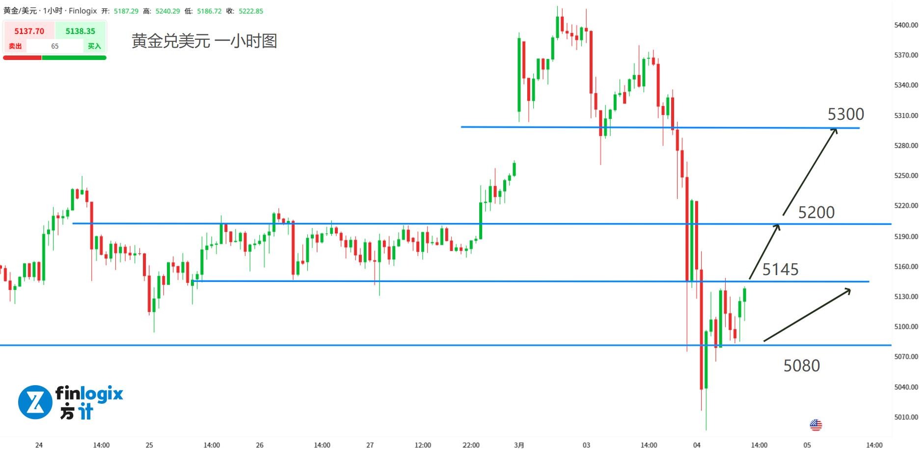 技术面:100均线出现拐点,方向未定,多单入场需要等待突破并设好止损。现价上方的关键阻力在5145附近,关注突破后的跟随看涨机会。日内动能较强,配合内盘开盘动能入场。
