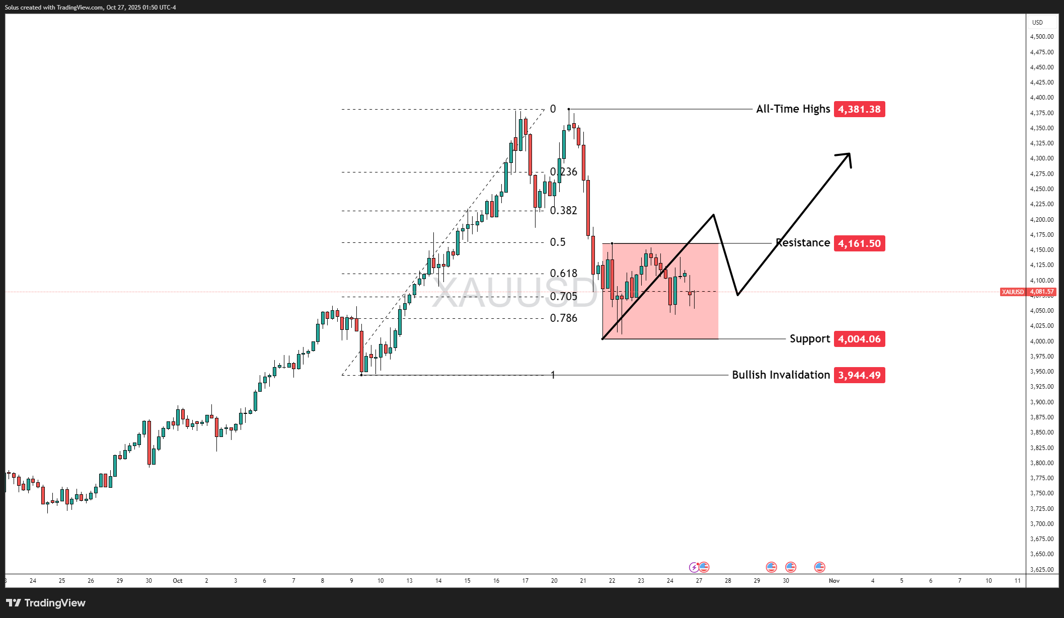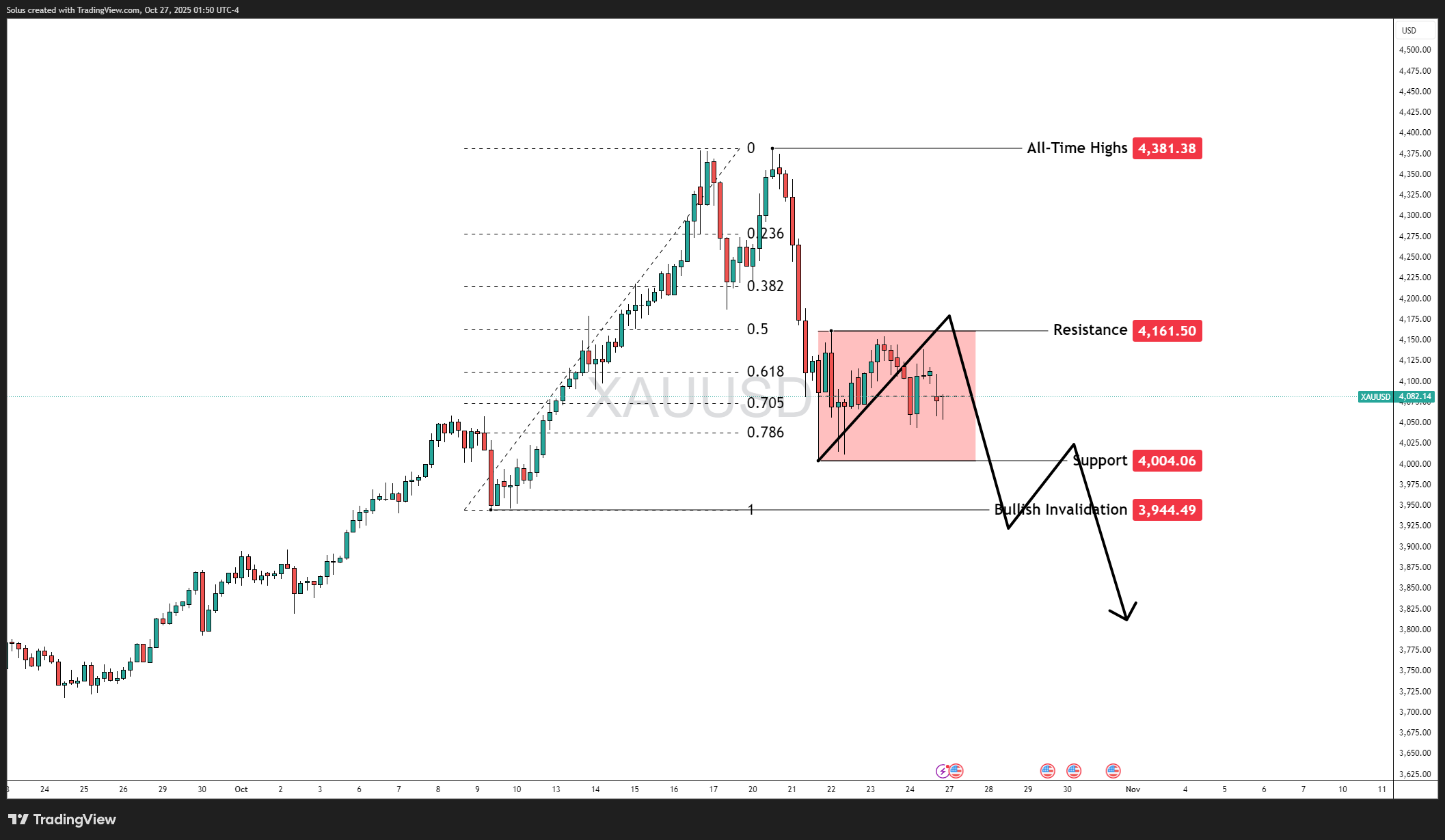 • Technical: Consolidation between $4,004–$4,161; a break above $4,161 reopens the path to $4,300, while a close below $3,944 invalidates the bullish case.