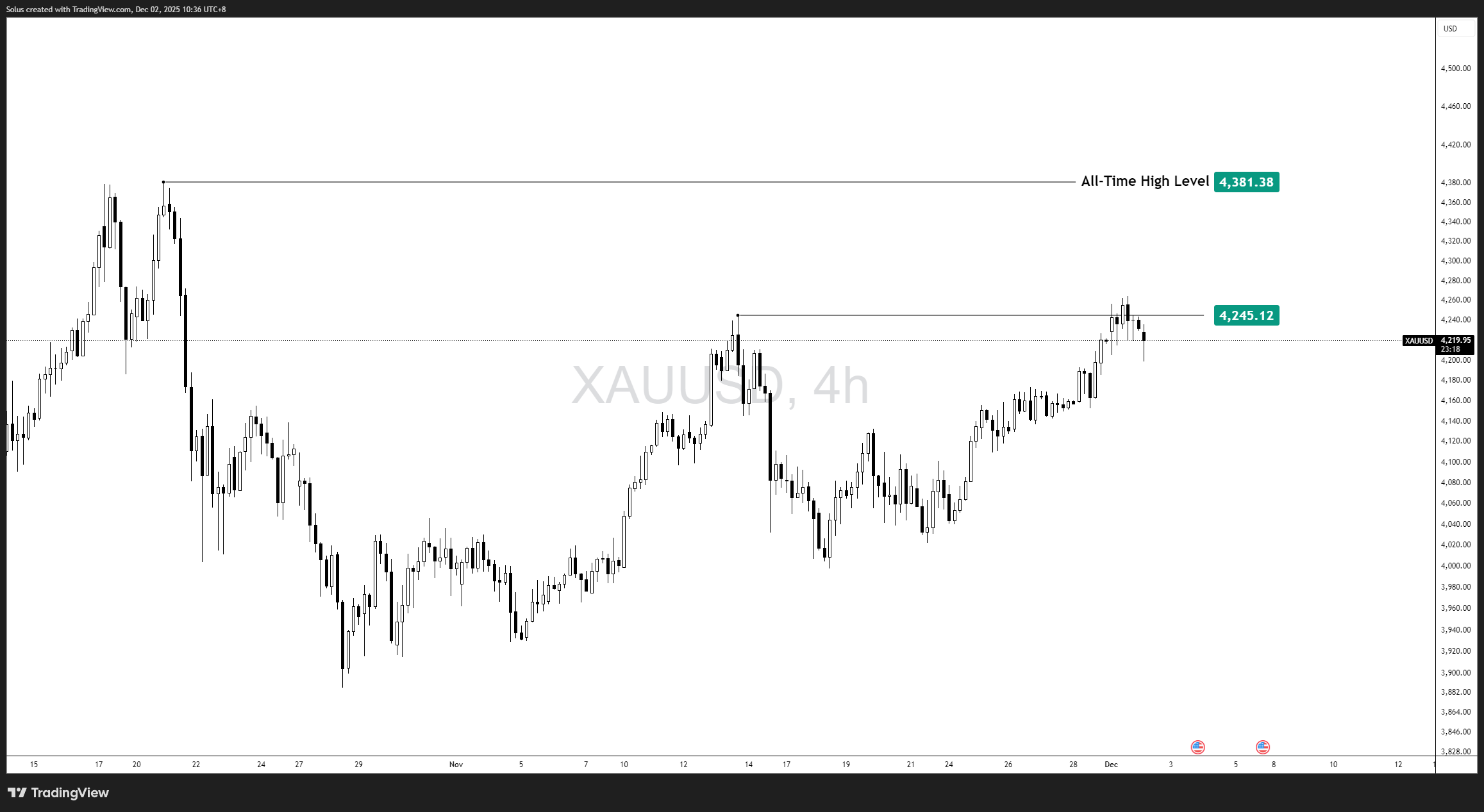 • Gold pulls back from $4,245 but remains structurally bullish, with buyers preparing for another potential run at the all-time high.