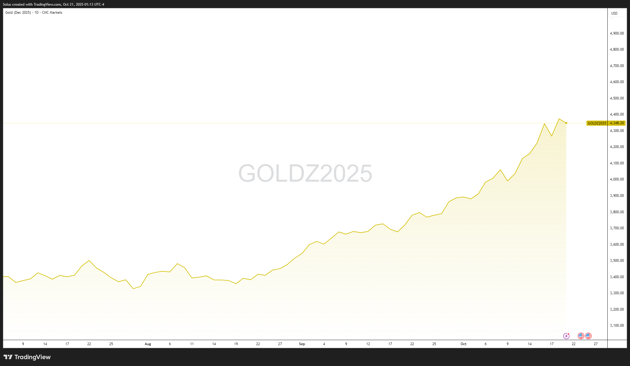 Gold continues to defy gravity. Prices surged beyond $4,300, printing a fresh all-time high at $4,400, and remain elevated as traders weigh a U.S. government shutdown against the prospect of deeper Federal Reserve rate cuts.