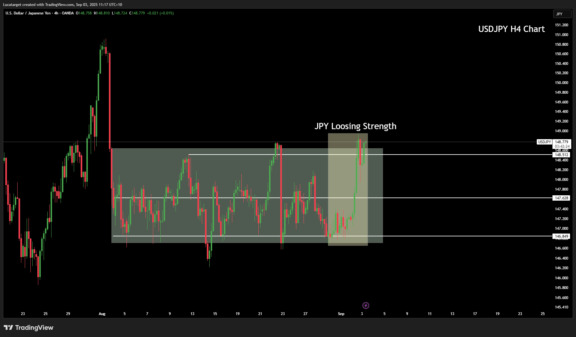 Yet I remain cautious, with U.S. nonfarm payrolls due this Friday, any softer-than-expected data could quickly cap the upside in USD/JPY and trigger position reversals.