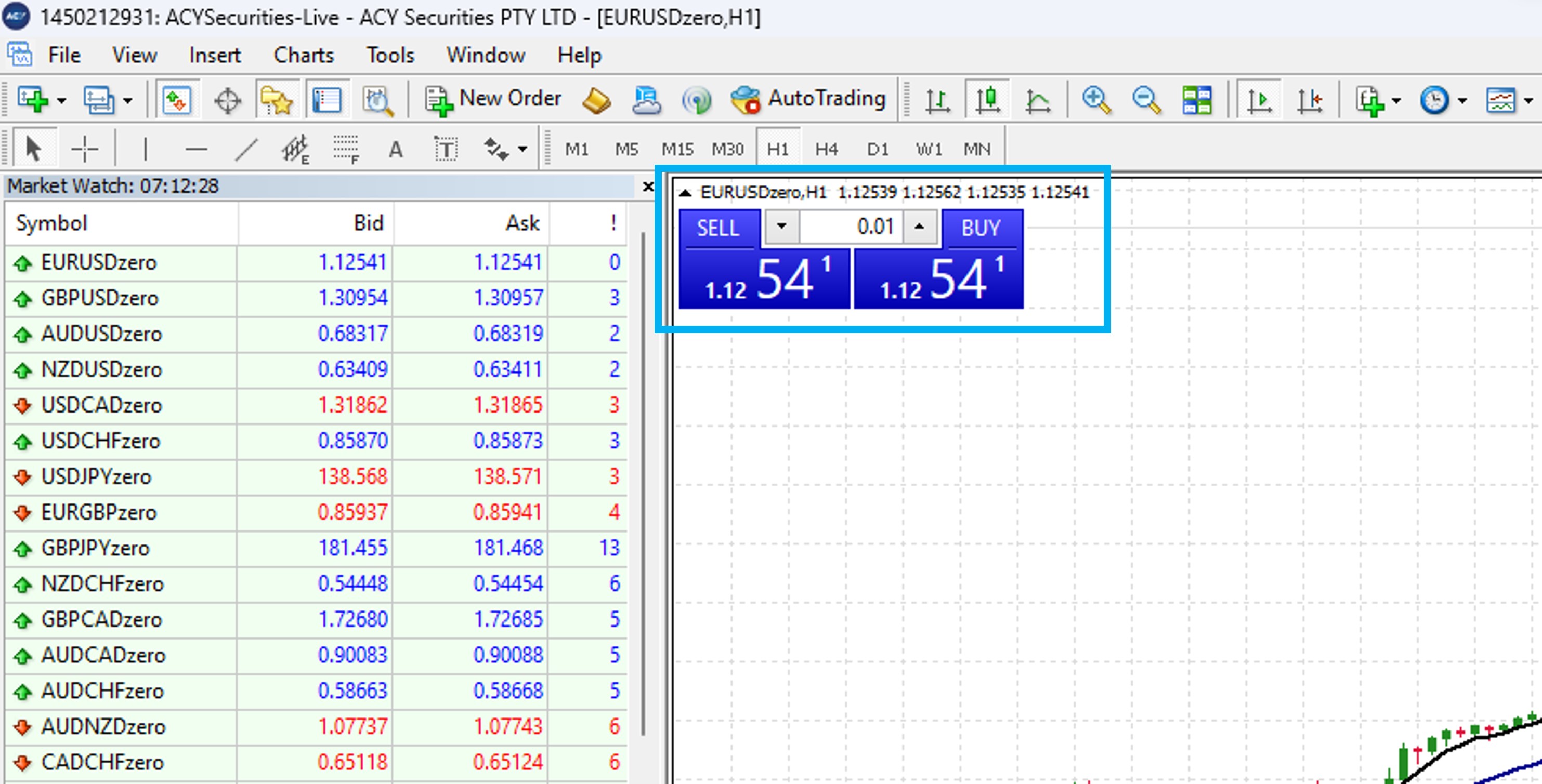 Once you have successfully activated one-click trading, you will notice a dedicated button on your MT4 interface, allowing you to place trades with a single click.