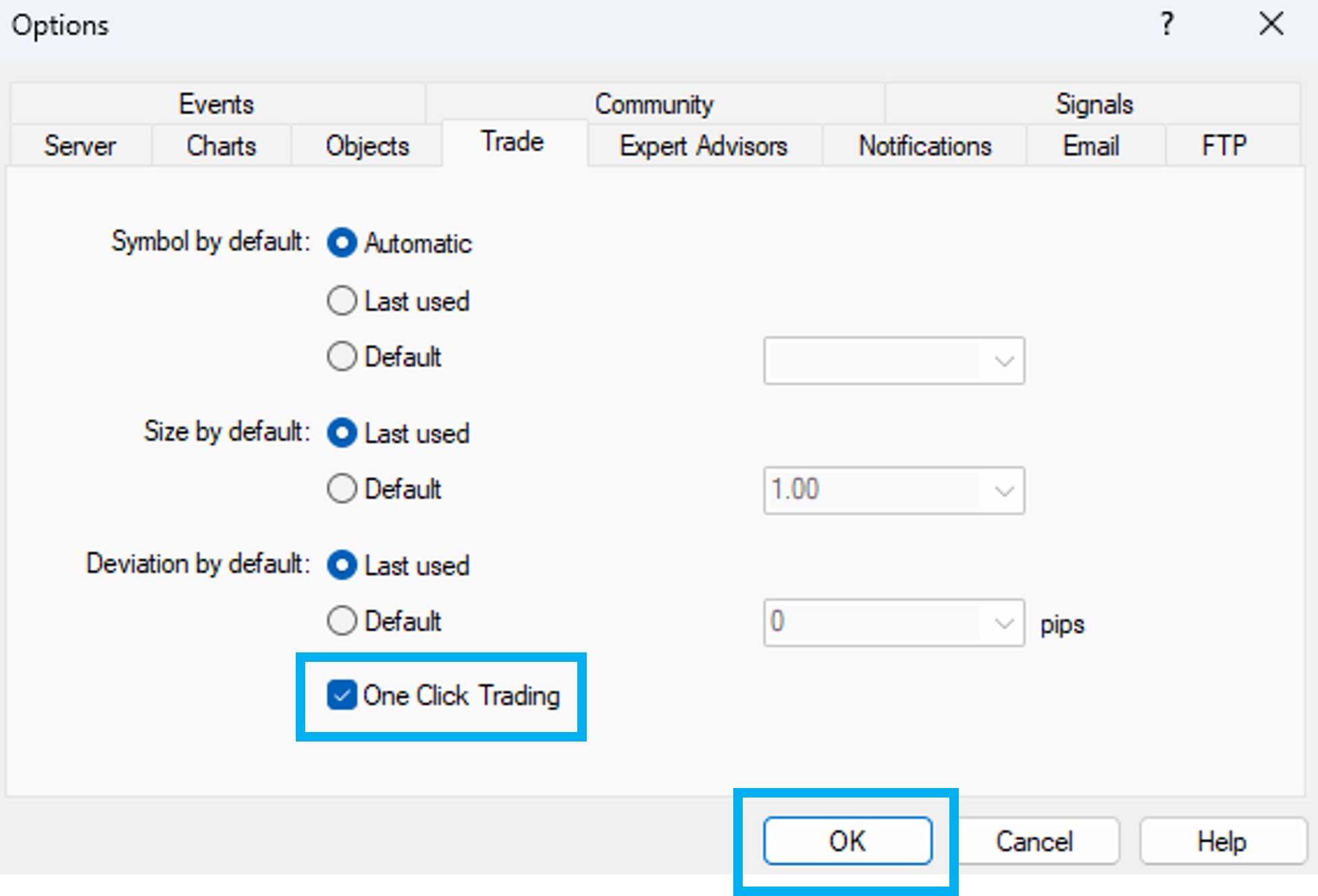 To begin harnessing the power of one-click trading, you first need to activate the feature in your MT4 platform and access the MT4 one click trading settings.