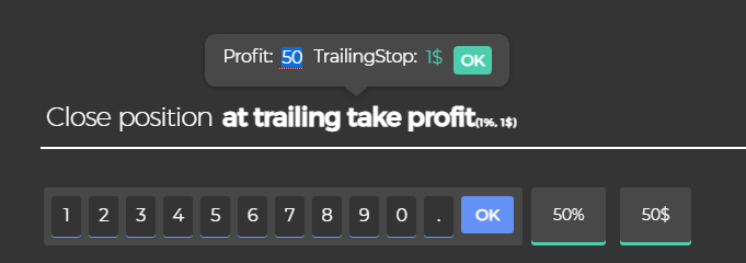 In one sentence – Trailing-Take-Profit allows you to set your Trailing-Stop-Loss to trigger only after a certain profit. Meaning, it follows the uptrend and sets to close the position above a specific profit and below a defined loss. In other words, by setting a TTP, one can make sure that the profits made during the rising of the asset are secured, before the price goes down, deleting the profits.