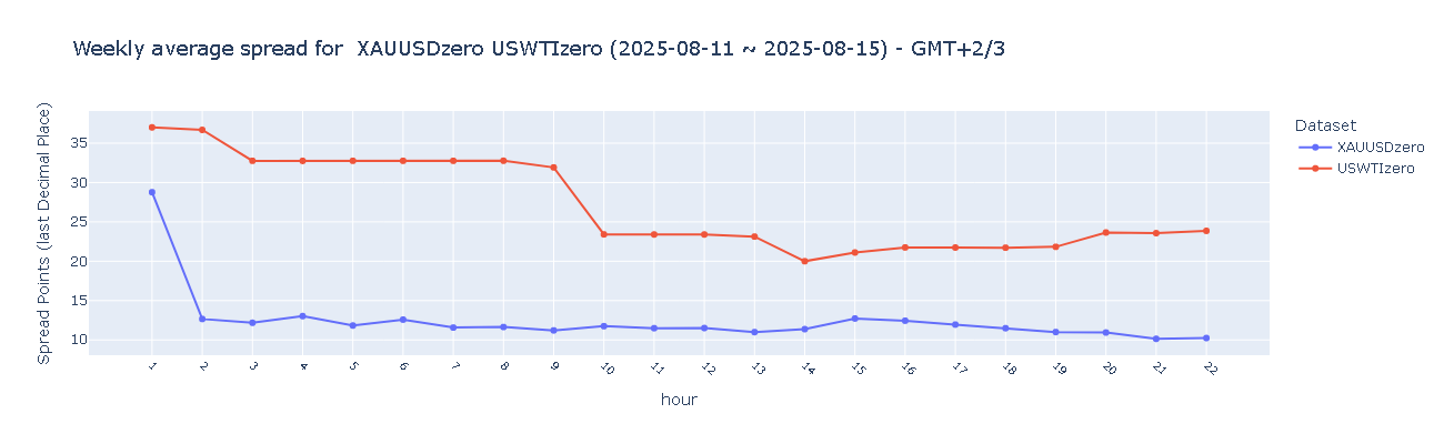 USWTI (US Crude Oil) achieved Excellent spreads (20–30 points) in the European and US sessions, and Good spreads (30–40 points) in the Asian session.