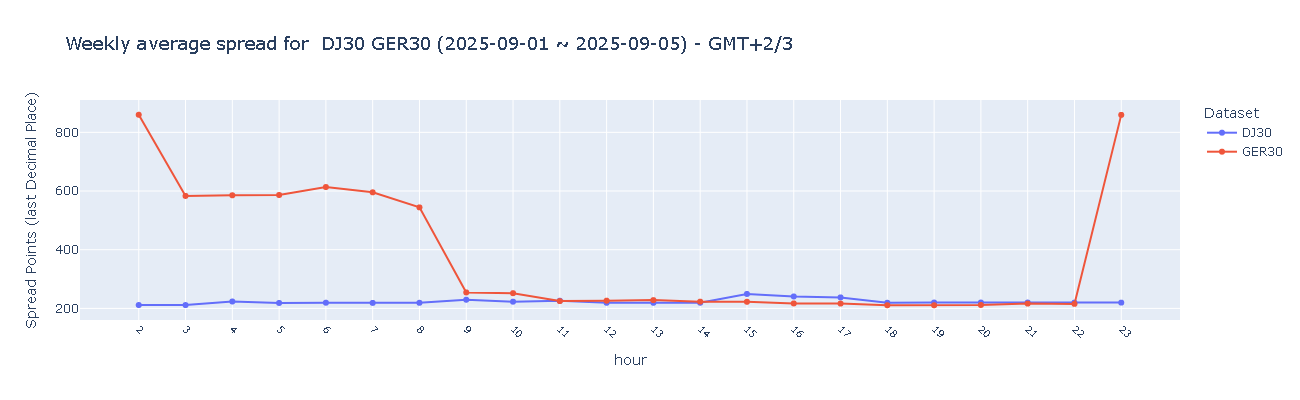 Chart III. Weekly Average Spread for German 30 Index and Dow Jones 30 Index (GER30, DJ30)
