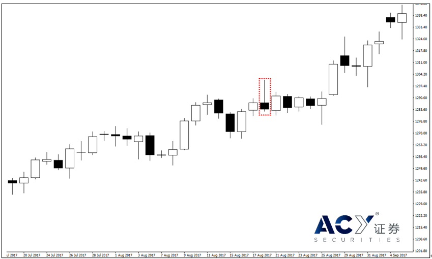 图五 尽管出现空头流星形态,价格仍一路向上走