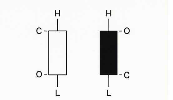 K线通常由我们称为"OHLC"的四个要素组成,即开盘价(O)、最高价(H)、最低价(L)和收盘价(C)。这四个要素不仅仅是告诉我们价格在哪里开盘、当天达到的最高和最低点以及收盘位置。还有更深层的含义。我们可以仅通过查看OHLC来分析当天的市场周期。
